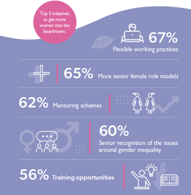 So what should be done and what are the barriers to women entering the boardroom? Not surprisingly the biggest barrier continues to be women taking on childcare or caring responsibilities. Half of our survey respondents had children at home and two-fifths of women reported caring responsibilities had negatively impacted their career.