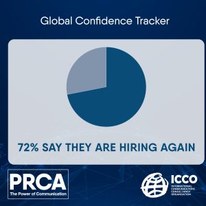 The study reveals impressive levels of confidence amongst PR and communications leaders. The research shows more than two-thirds (72%) of PR agencies and in-house teams globally are hiring and almost nine out of 10 (87%) respondents are ‘confident’ or ‘very confident’ about the future of their organisation – this is a three percentage point rise since the last Confidence Tracker in October 2021.