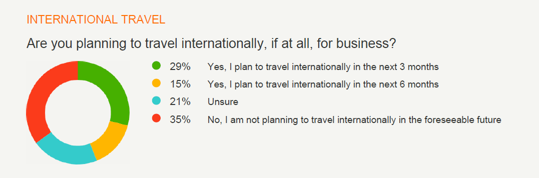 The study – conducted by Question & Retain – evidences a strong appetite for the resumption of international travel, with just under a third (29%) of senior professionals planning to travel internationally for business within the next three months.